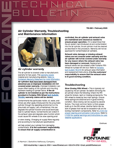 LT-044 | Fontaine Fifth Wheel Parts Catalog LT-135 | LT-076 | Heavy/Severe Duty Mini Catalog LT-322 |